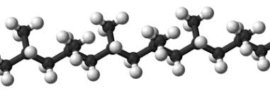 As figuras seguintes mostram uma pequena porção da molécula de poli-propileno em que se dá ênfase à orientação dos grupos –CH3 que aparecem ligados a átomos de carbono alternados. Estes grupos, chamados grupos metilo, podem surgir com arranjos diferentes: