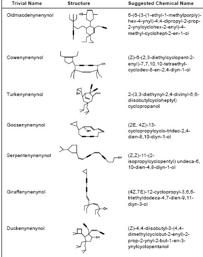 Receando que a nomenclatura dos compostos orgânicos fosse um assunto demasiado árido para interessar os seus alunos do 1º ano, Dennis Ryan da Hofstra University, Hempstead, NY, desenhou um conjunto de moléculas orgânicas (imaginárias, mas perfeitamente plausíveis, que inclusivamente pôs a hipótese se sintetizar) que tornassem o estudo da nomenclatura mais divertido. Imaginem que o Old MacDonald deixou a sua quinta para se tornar professor de química orgânica...